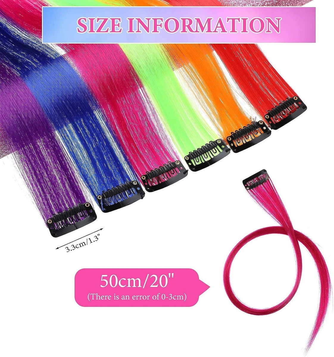 Rainbow Colors 6 Pack Clip In Hair Extensions Magic Manes Hair Extensions